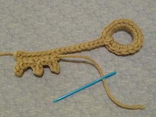 The best color choices for keys are usually going to be grays or charcoal. You could do black for cast iron, gold, brass, tan, or different browns. It can be made out of any size yarn or thread, as long as you use a similar size hook to match your yarn weight you should be okay.