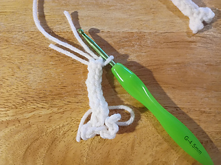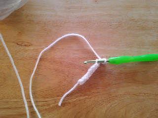 Ch3 and start I-cord. I-cord for 7 Rows, sl-st only two loops, then sl-st last two loops on the hooks. Ch3, sl st into the 3rd ch from the hook, sl-st into the 1st st you sl-st into previously ending I-cord, ch3, sl-st into same stitch you sl-st previously.