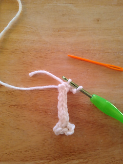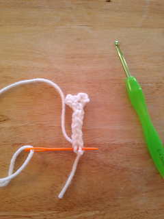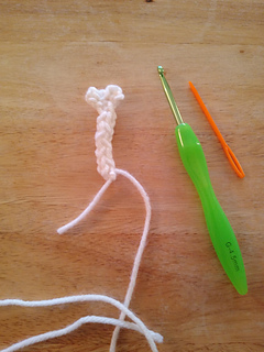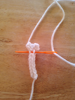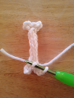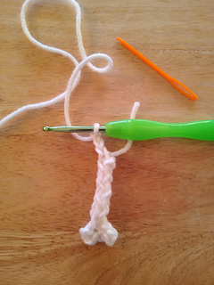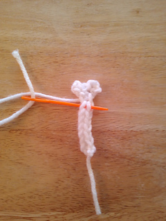 I-cord Basics: Ch3, Insert hook into second ch st from the hook, yo and draw up a loop, insert hook into next ch st, yo and draw up another loop. There should be three loops on the hook now. *Drop two sts from hook, holding onto them with your non hook hand, yo and draw up a loop, then insert into 1st dropped st, yo and draw up a loop, last insert hook into last st and yo and draw up a loop. This completes a row.