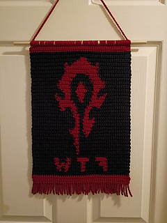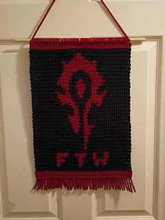 Early posts in this blog talked about me making something for a friend. Which was a World of Warcraft Horde Tapestry for her gamer den. Well I finally finished it. And since it wasn't a commission it got done in a slower time frame, under the understanding that it wasn't a rush job. I had inspection and a ton of other things pop up, stuff like paperwork and household stuff. So I think I started planning this one like 3 months ago with tweaking it and what not. A month after that we bought supplies and then a few days ago I finished.